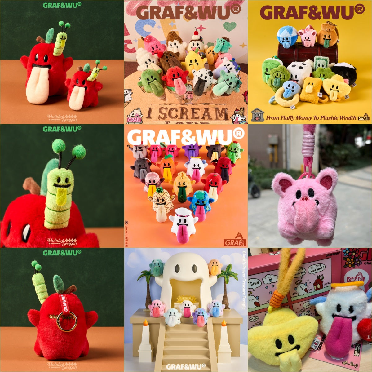 GRAF&WU MINI BooGhost CuteGhost2.0 Hamburger Volcano Angel Plush Keychain