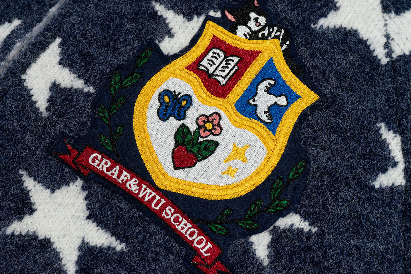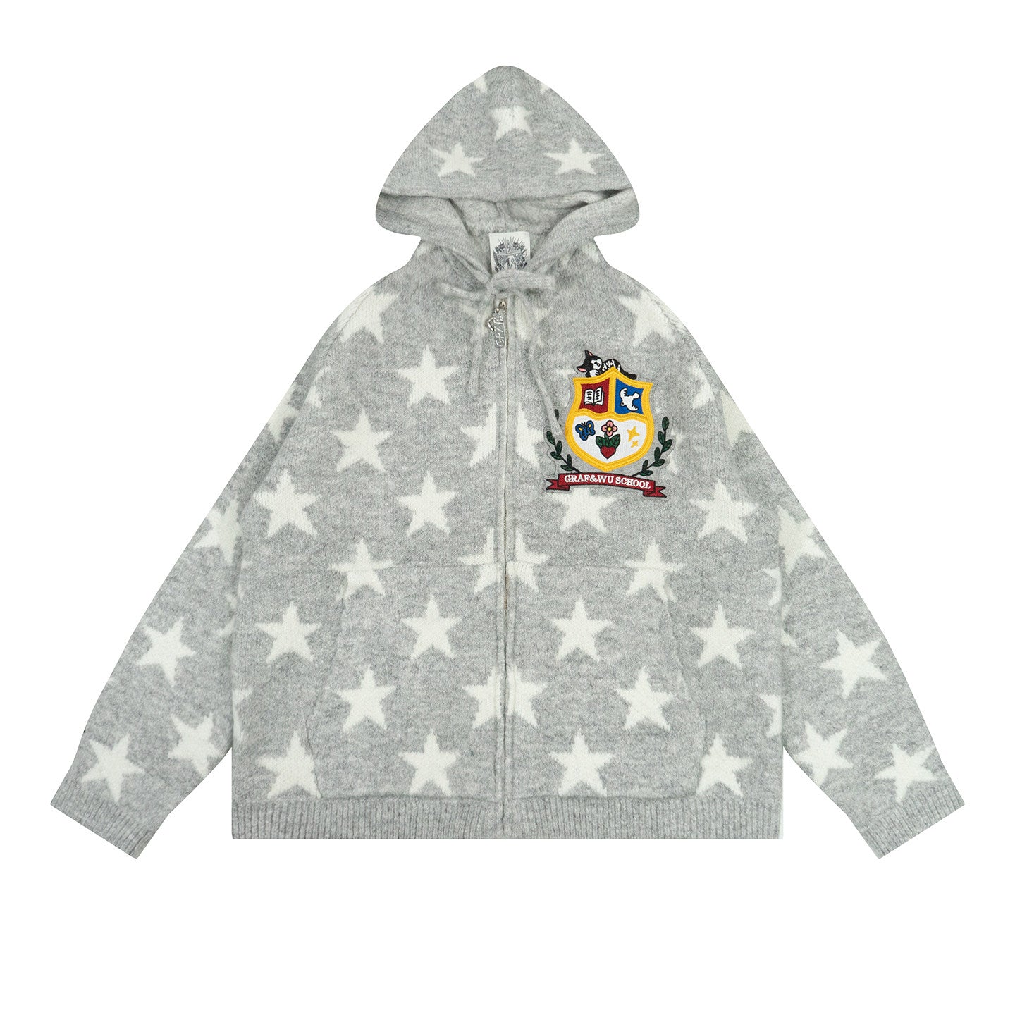 GRAF&WU Badge Star Graphic Mohair Cardigan Zipper Sweater