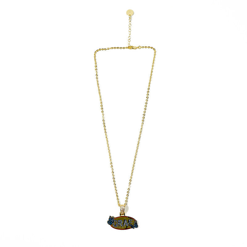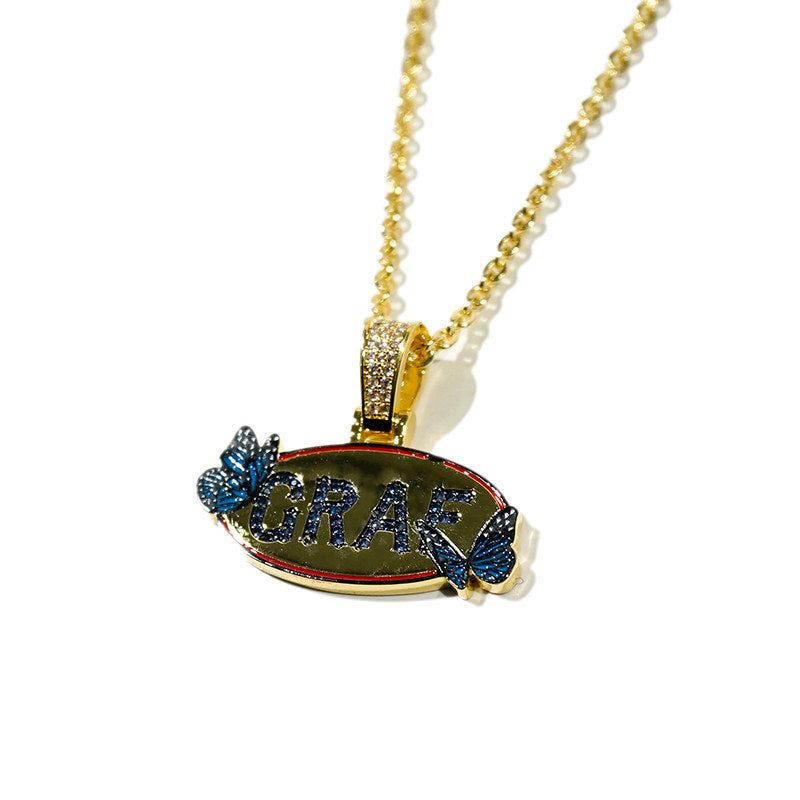 GRAF&WU Blue Butterfly Inlay Rhinestone Design Necklace