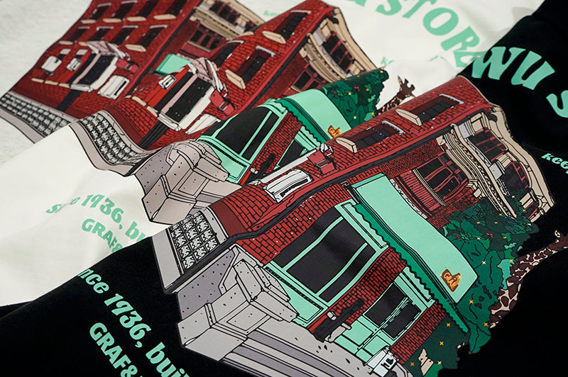 GRAF&WU Classic Old House Giraffe Shop Pattern Long-Sleeve Shirt