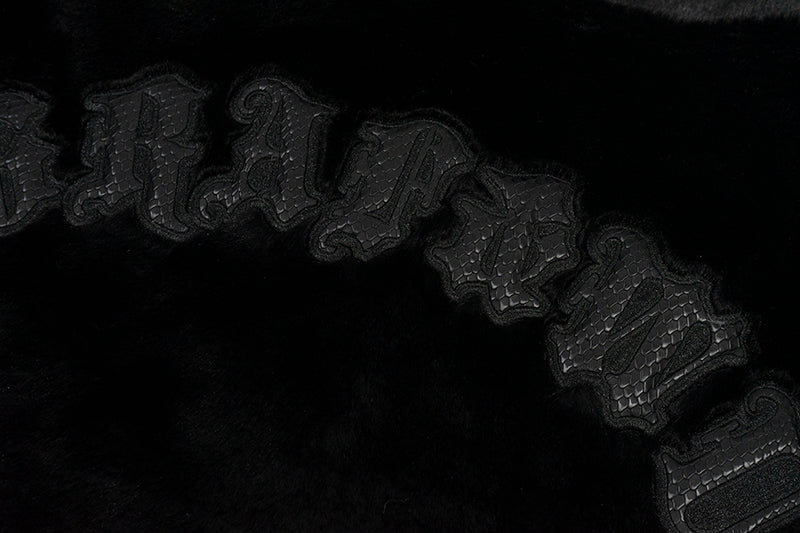 GRAF&WU Snakeskin Patch Embroidery Logo Faux Fur Jacket - Luxury Streetwear Coat