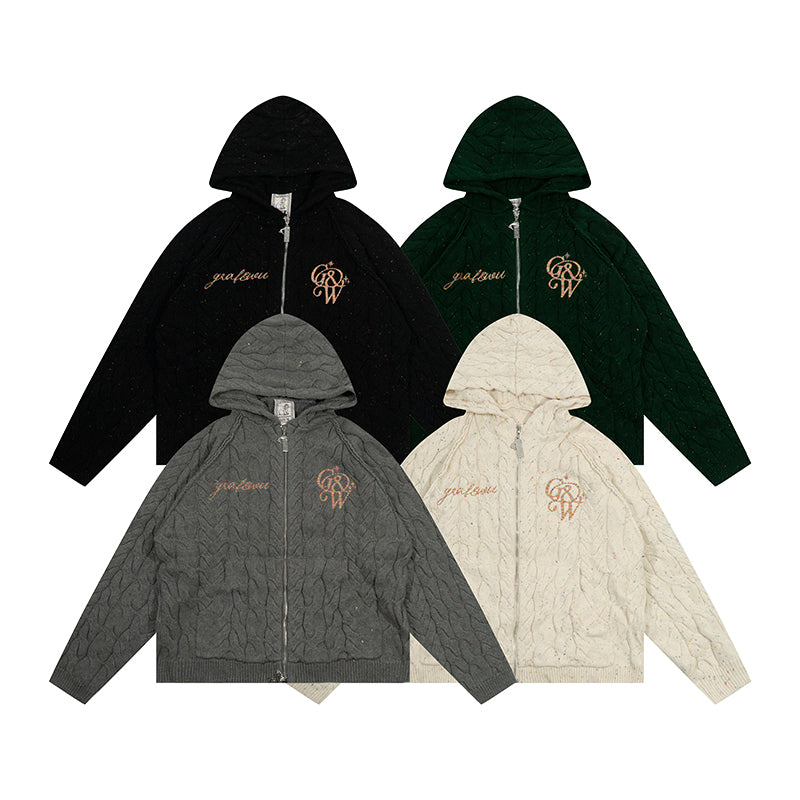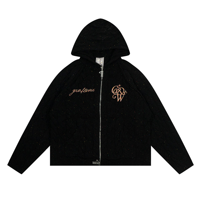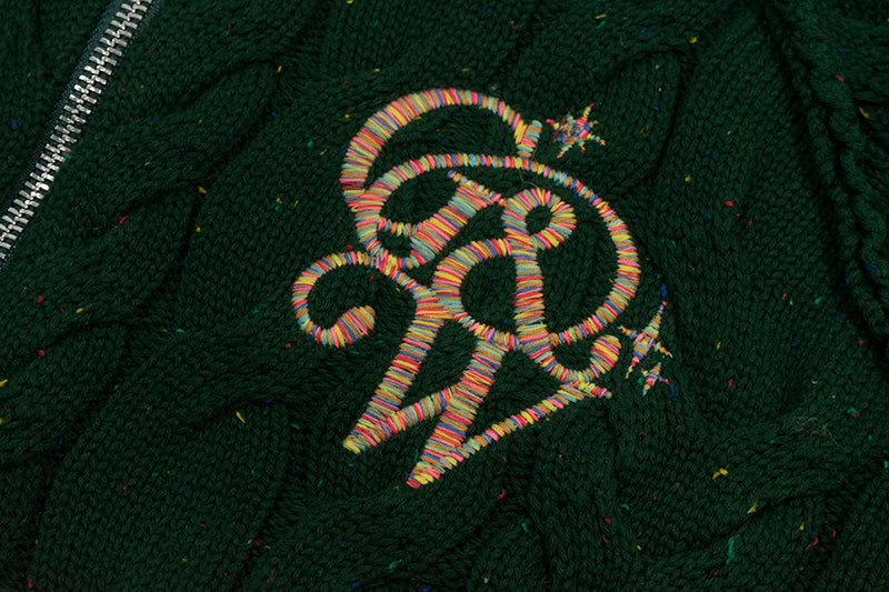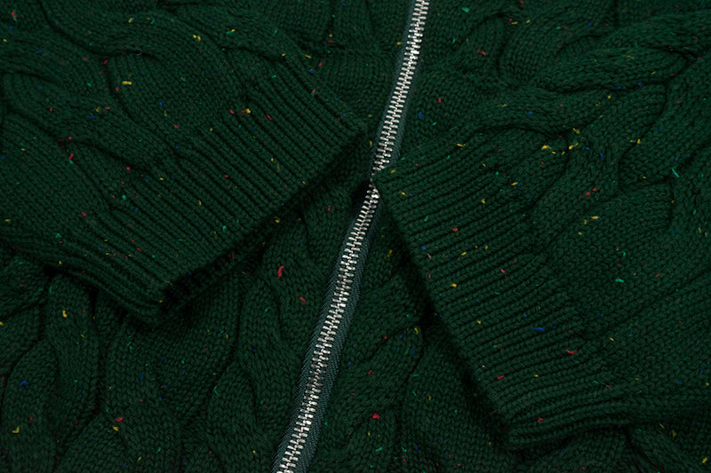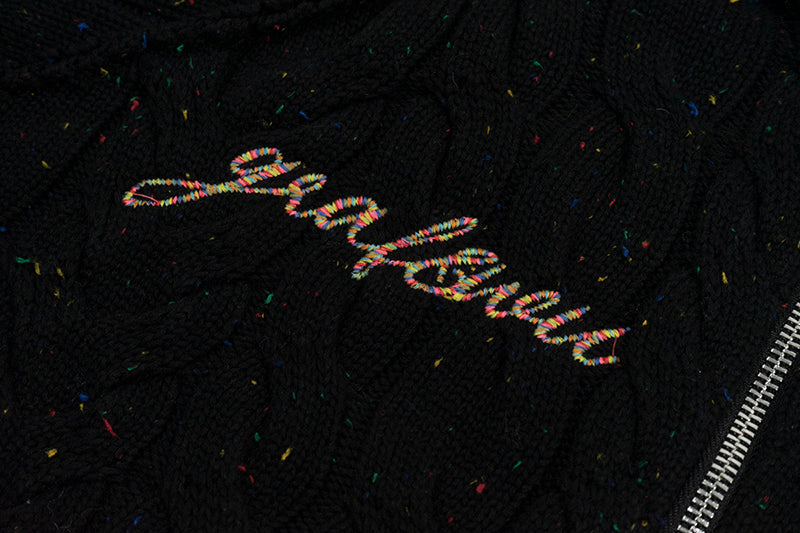 GRAF&WU Embroidered Twist Yarn Colorful Speckled Blended Zip Knit Coat