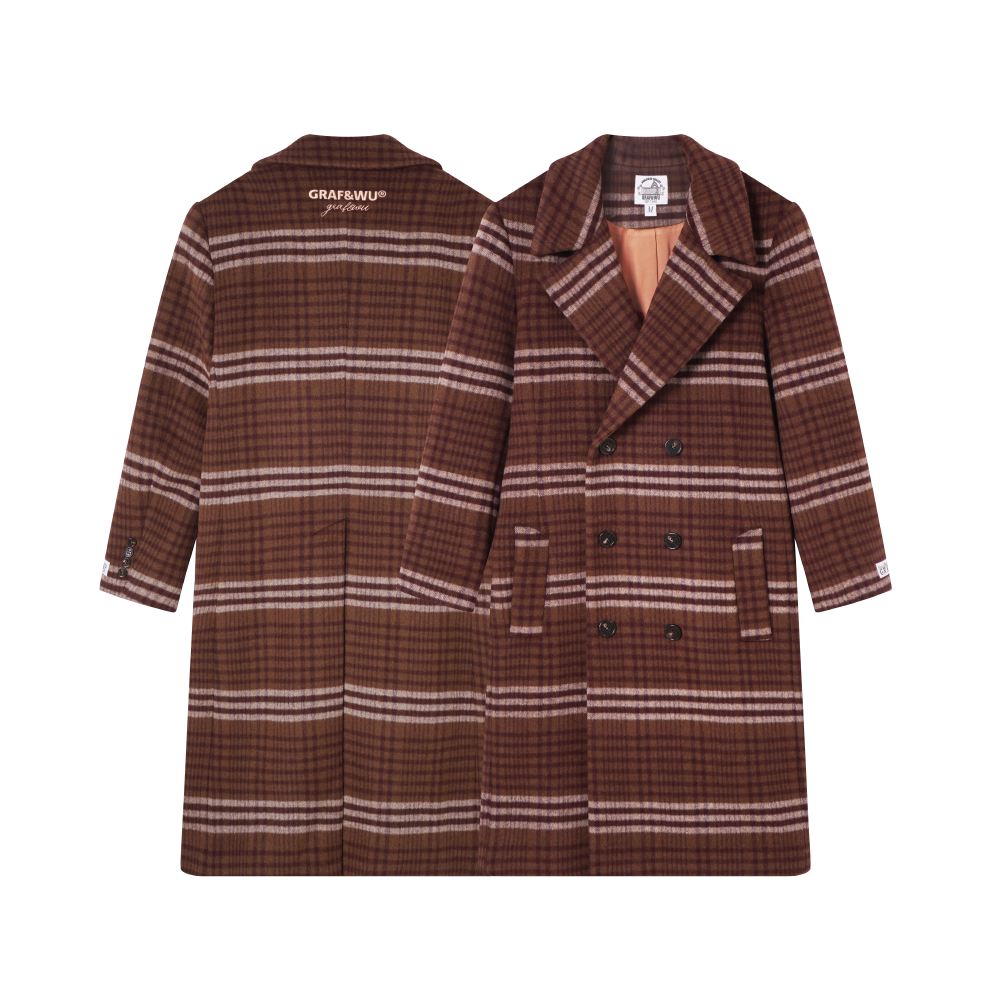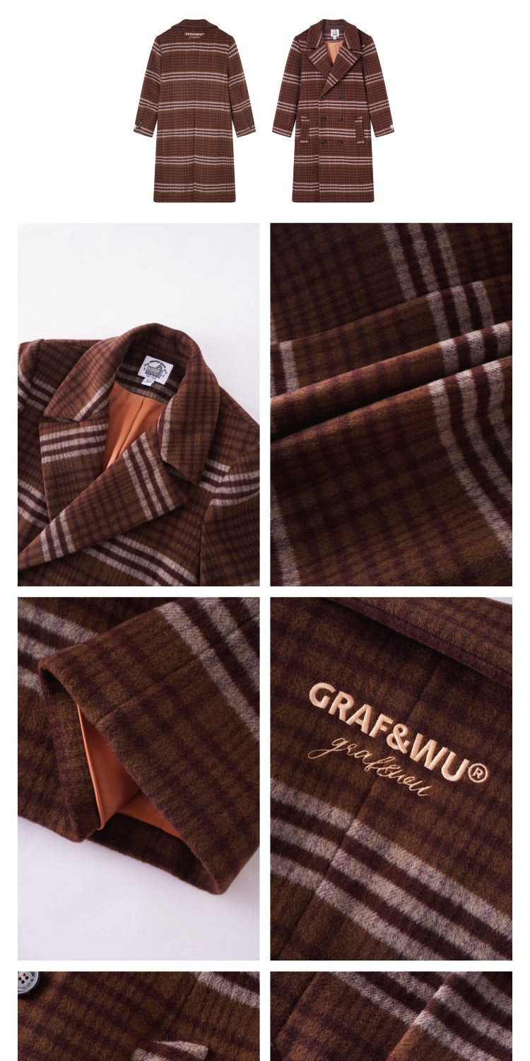 GRAF&WU Fashion Brown Plaid Embroidered 100% Wool Jacket Coat