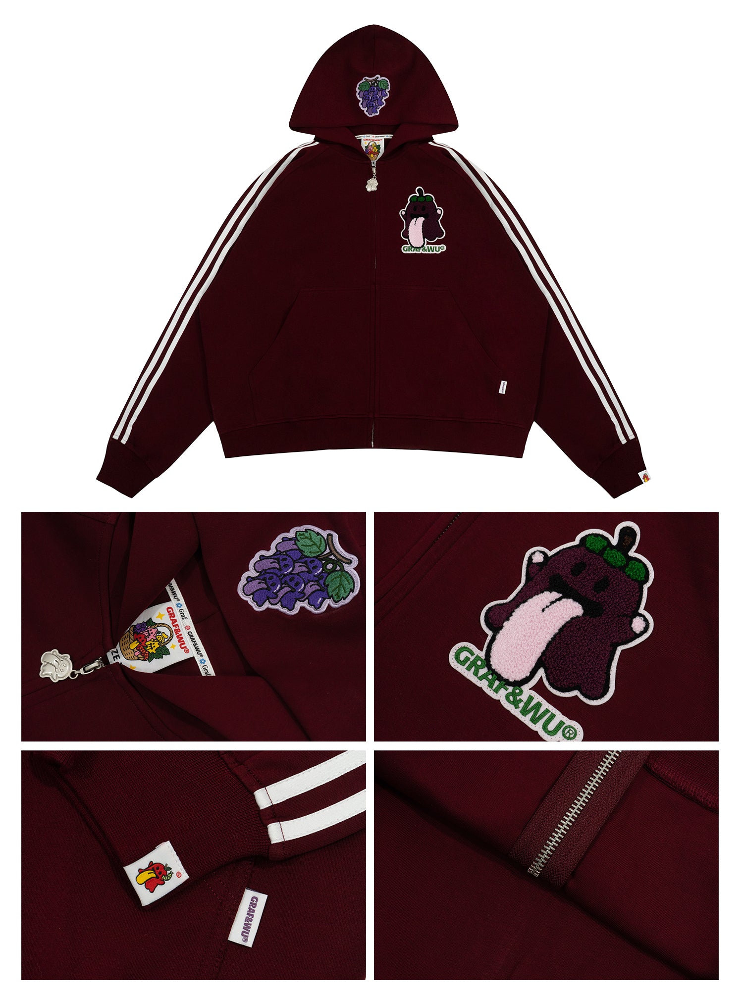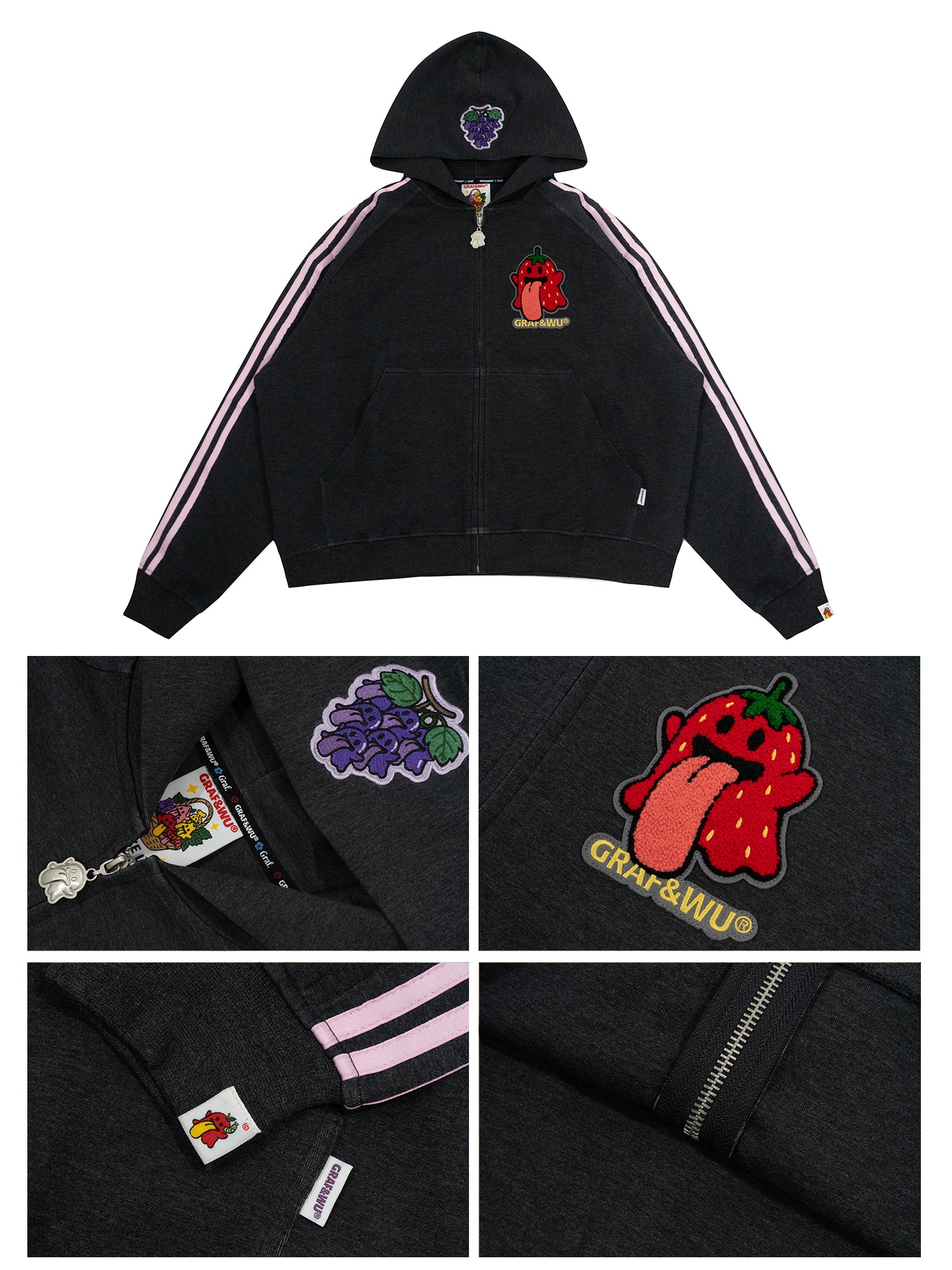 GRAF&WU Fruit Party Peach Lychee Banana Cute Ghost Thin Zip-up Hoodie