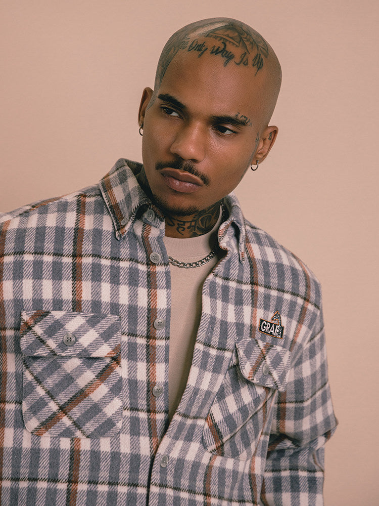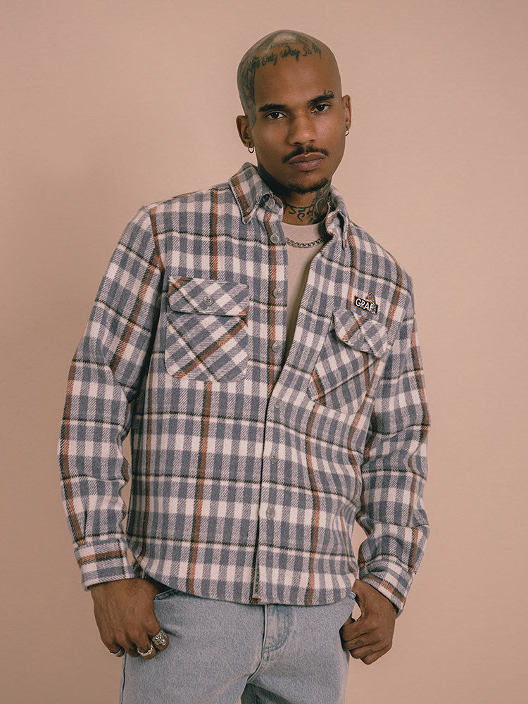 GRAF&WU Giraffe Embroidered Flannel Loose Plaid Shirt