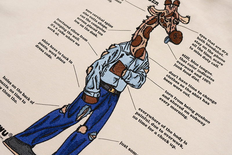 GRAF&WU Giraffe Stress Work Survivor Embroidery Hoodie
