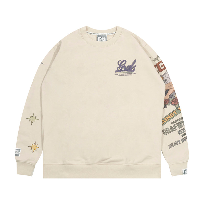 GRAF&WU Goddess Blessing Graphic Oversize Crew Neck Sweatshirt