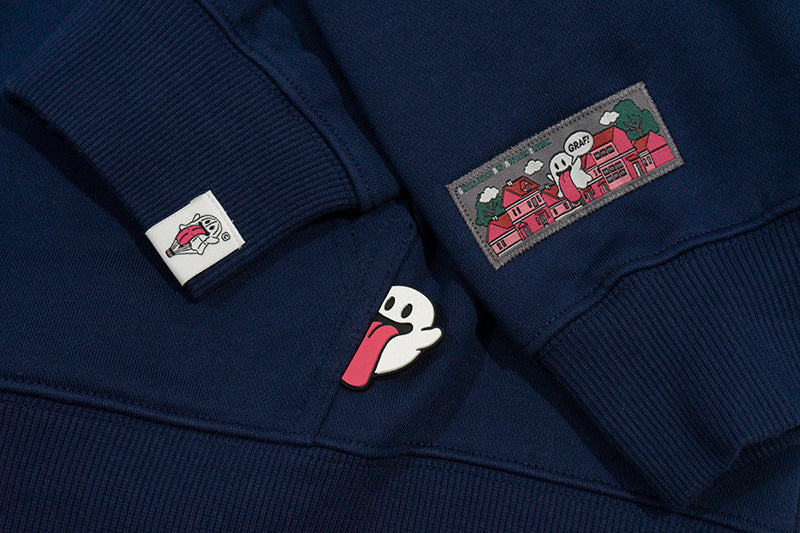 GRAF&WU Halloween Godzilla Unicorn Cute Ghost Embroidery Fleece Hoodie