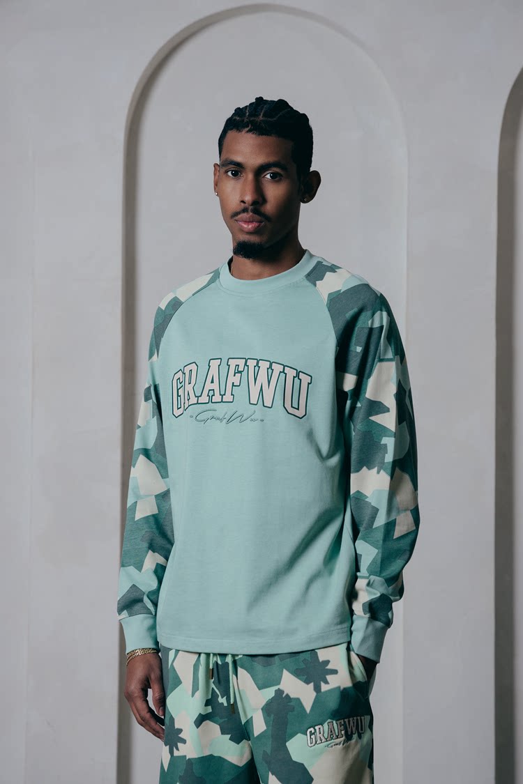 GRAF&WU Hidden Attack Camouflage Loose Raglan Long-Sleeve T-Shirt