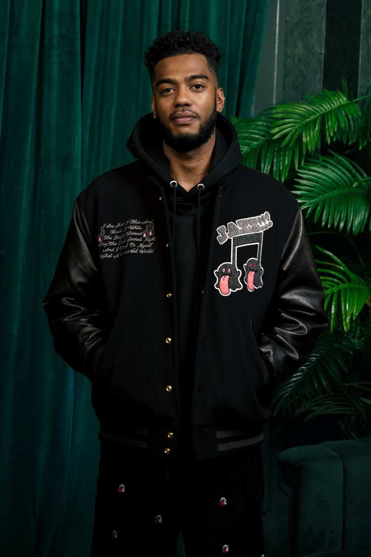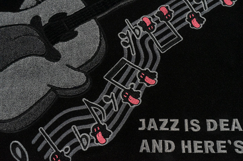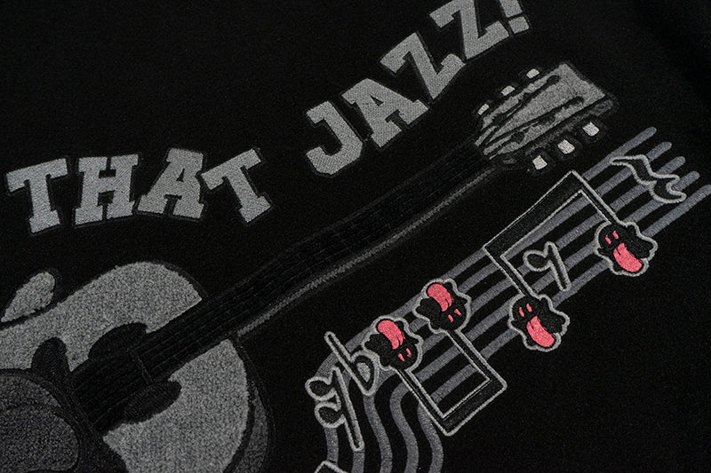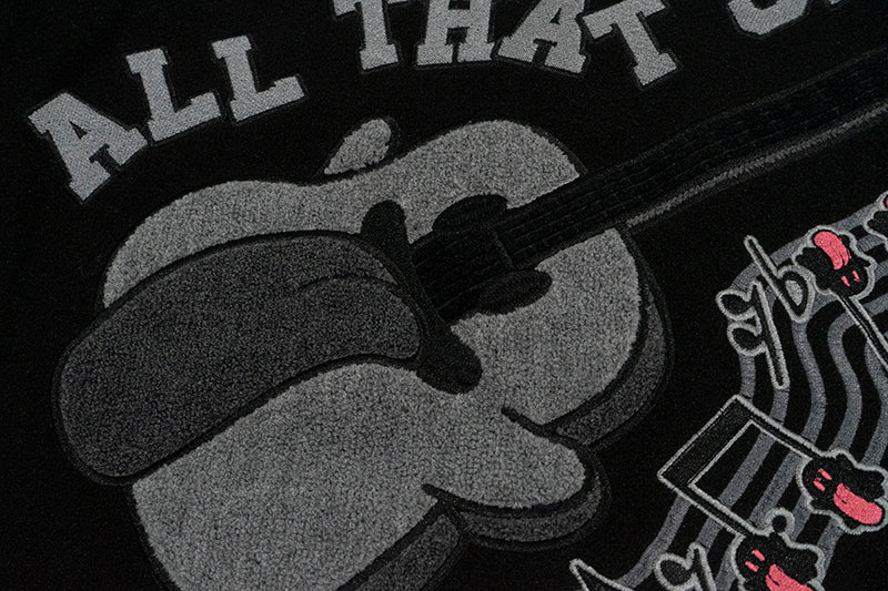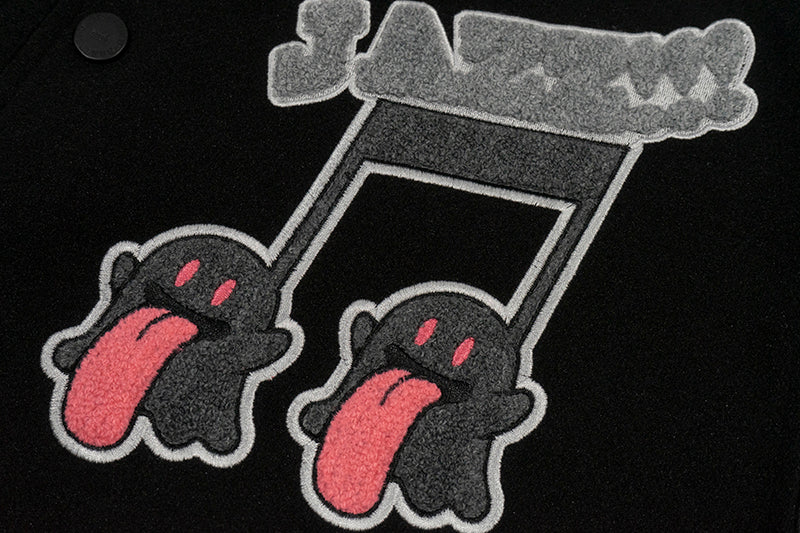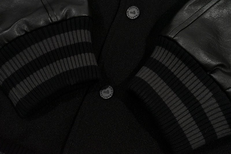 GRAF&WU Jazz Cute Ghost Leather Sleeved Wool Vintage Baseball Jacket
