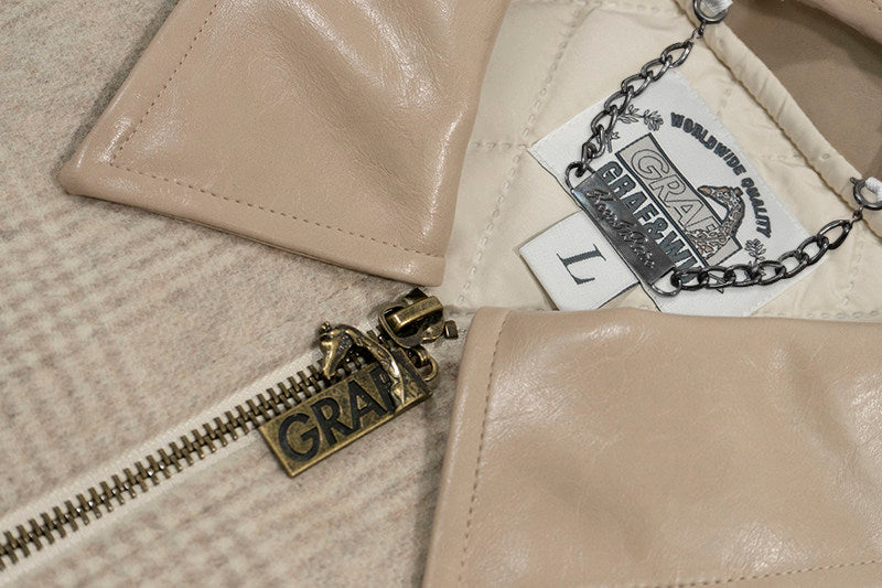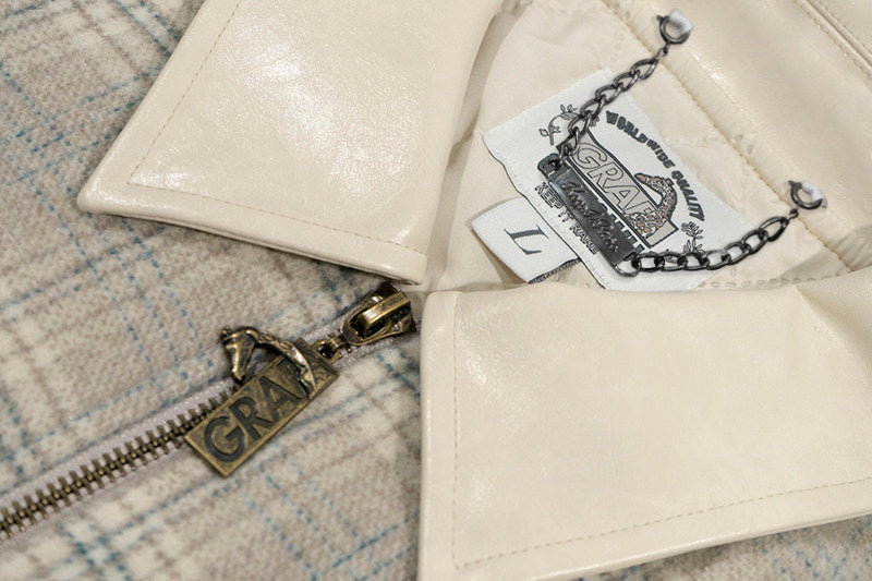 GRAF&WU Leather Collar Luxury Wool Retro Plaid Detroit Jacket