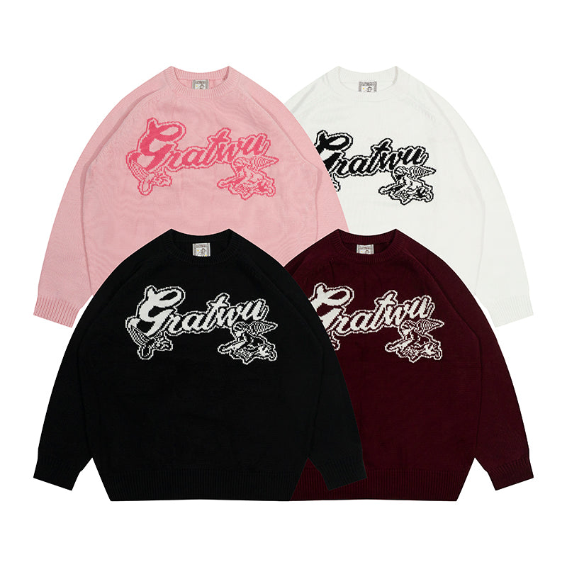 GRAF&WU Letter AK47 Little Angel Knitted Warm Sweater