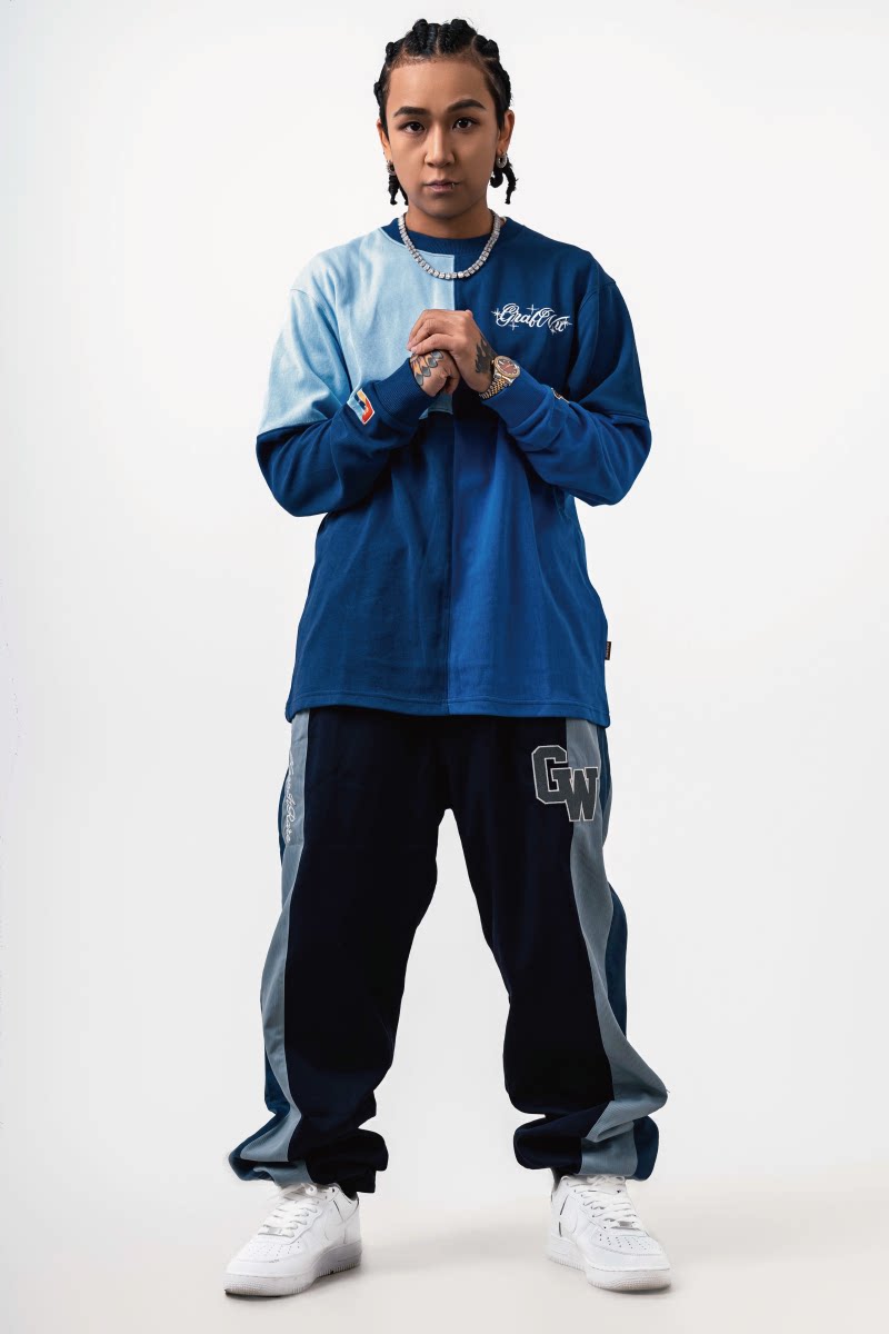 GRAF&WU Letter Embroidery Four-Patch Streetwear Long-Sleeve T-Shirt