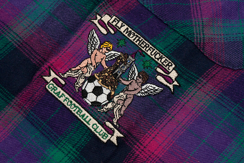 GRAF&WU Plaid Angel Football Embroidery Street Loose Brushed Shirt
