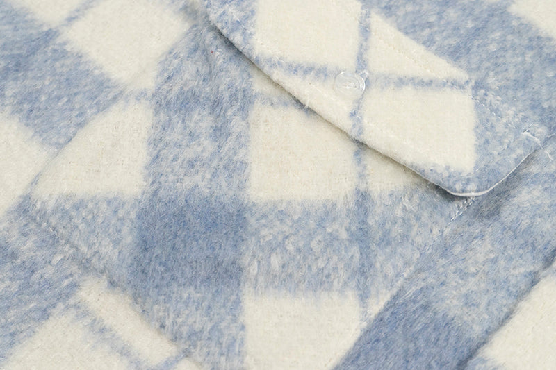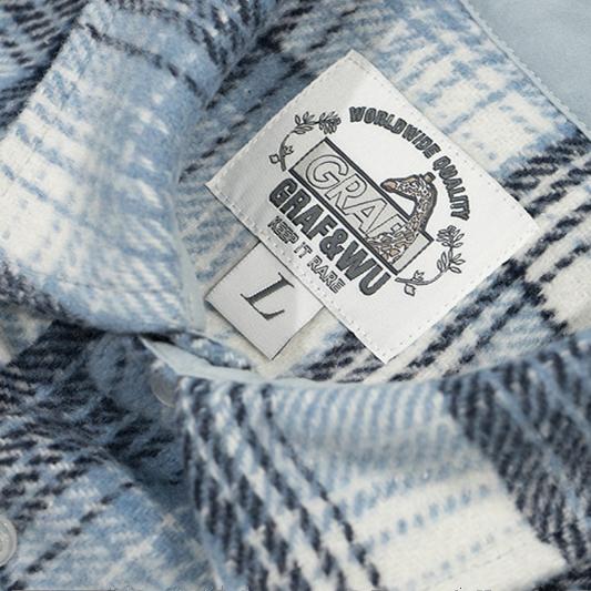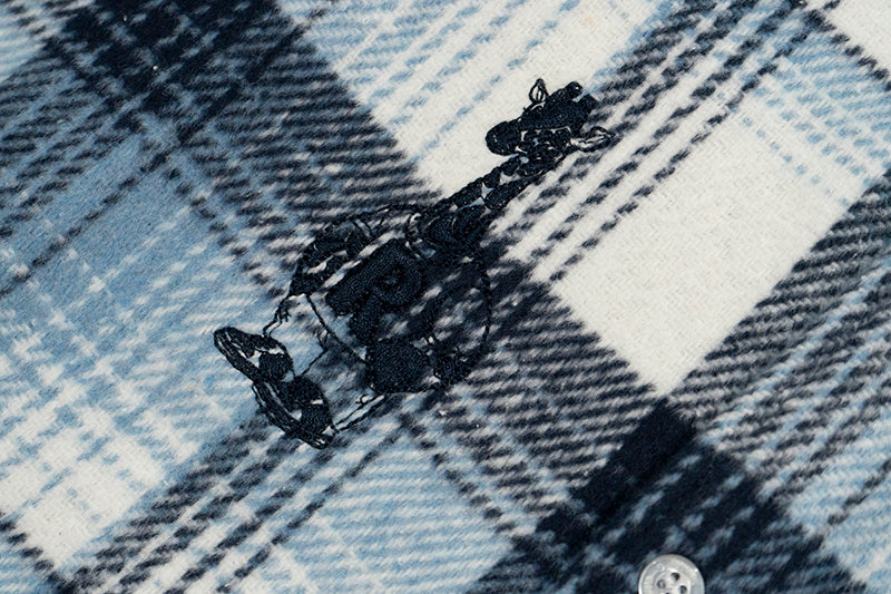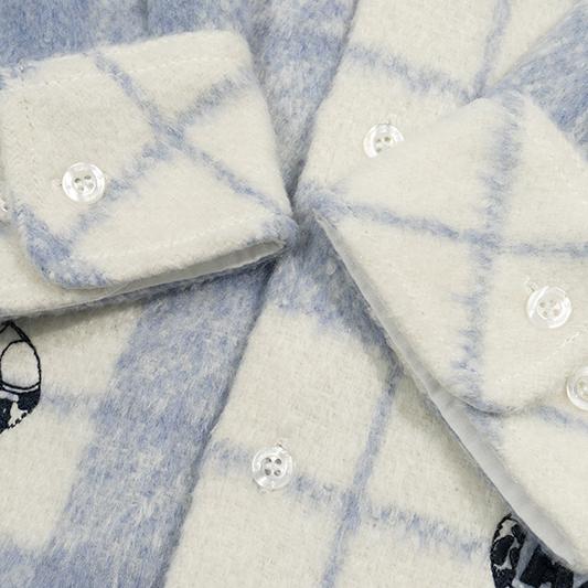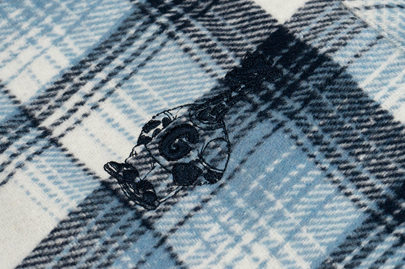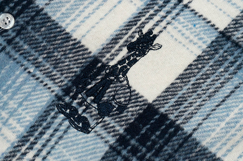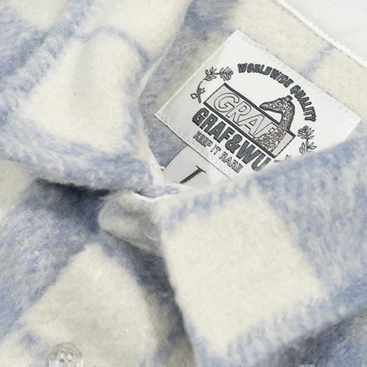 GRAF&WU Porcelain Blue Embroidered Deer Streetwear Loose Thick Shirt