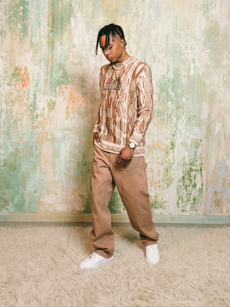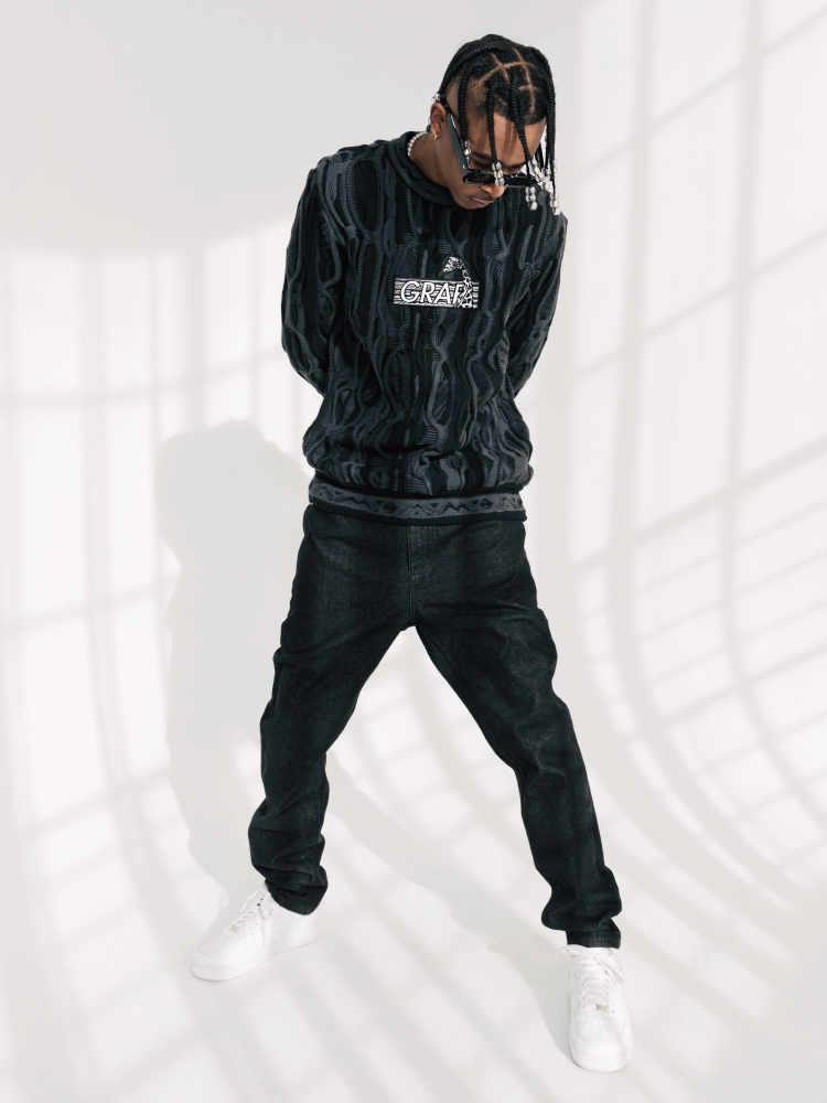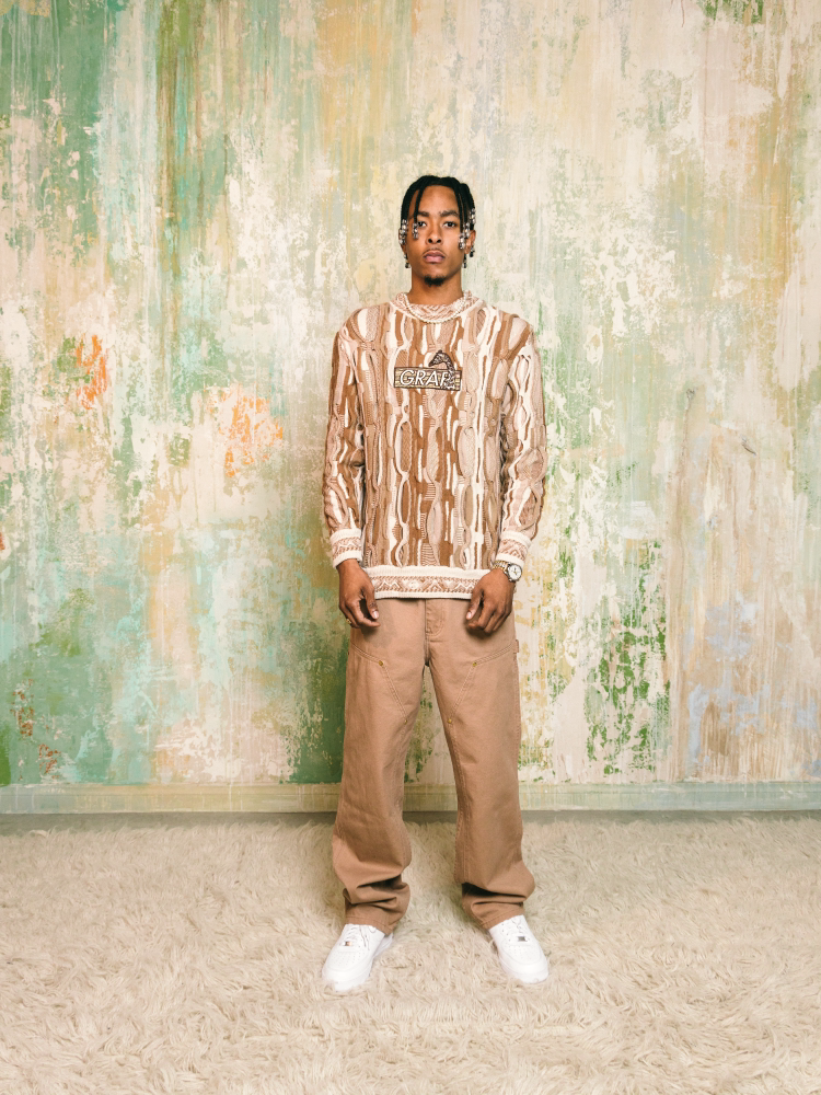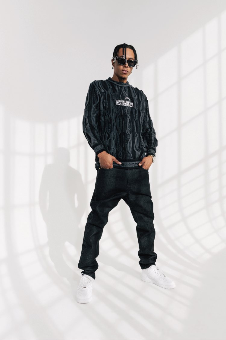 GRAF&WU Retro 3D Wave Pattern Street Art Knit Sweater