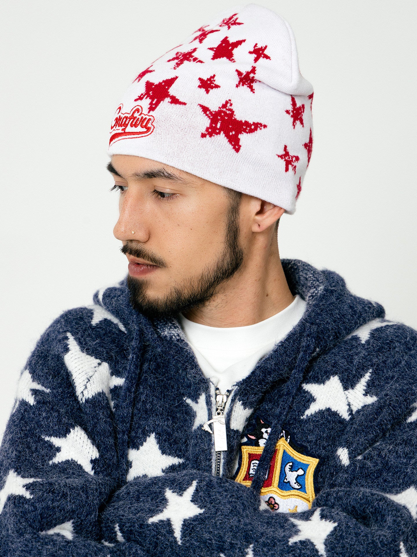 Embrace the Y2K revival with this statement knitted beanie featuring a bold retro star design. Crafted for the modern streetwear enthusiast, this hat effortlessly blends nostalgic aesthetics with contemporary fashion sensibilities.