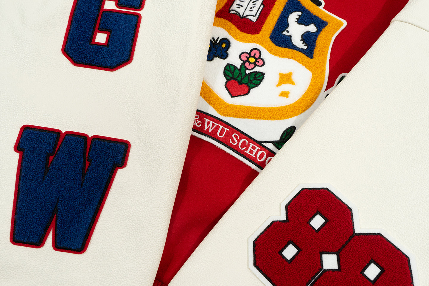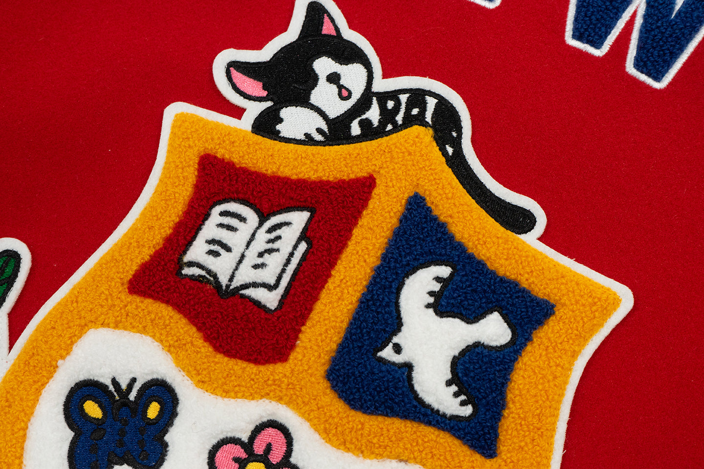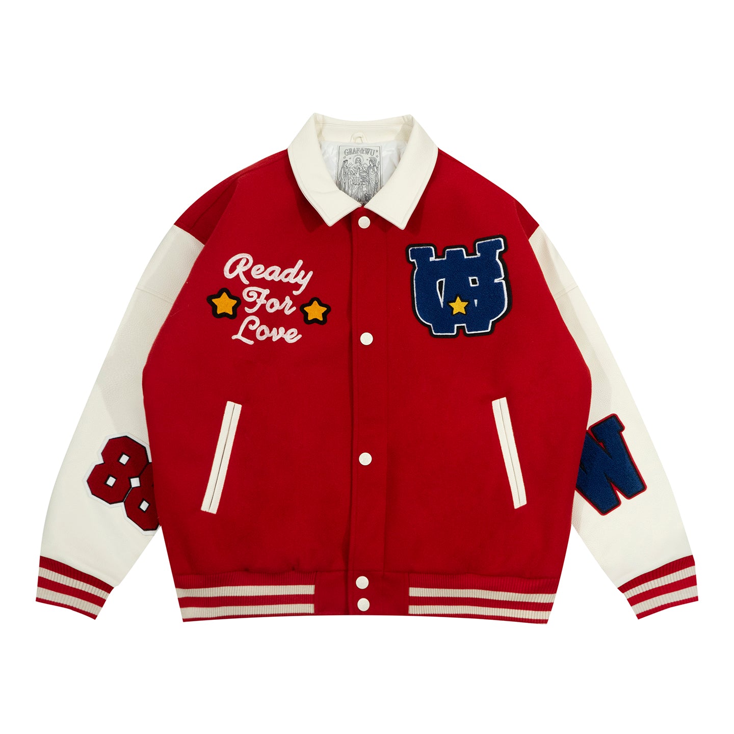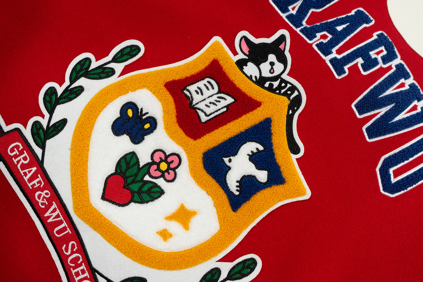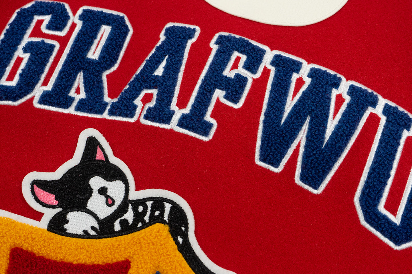 GRAF&WU Sleep Cow Cat Graphic University Leather Sleeve Varsity Jacket