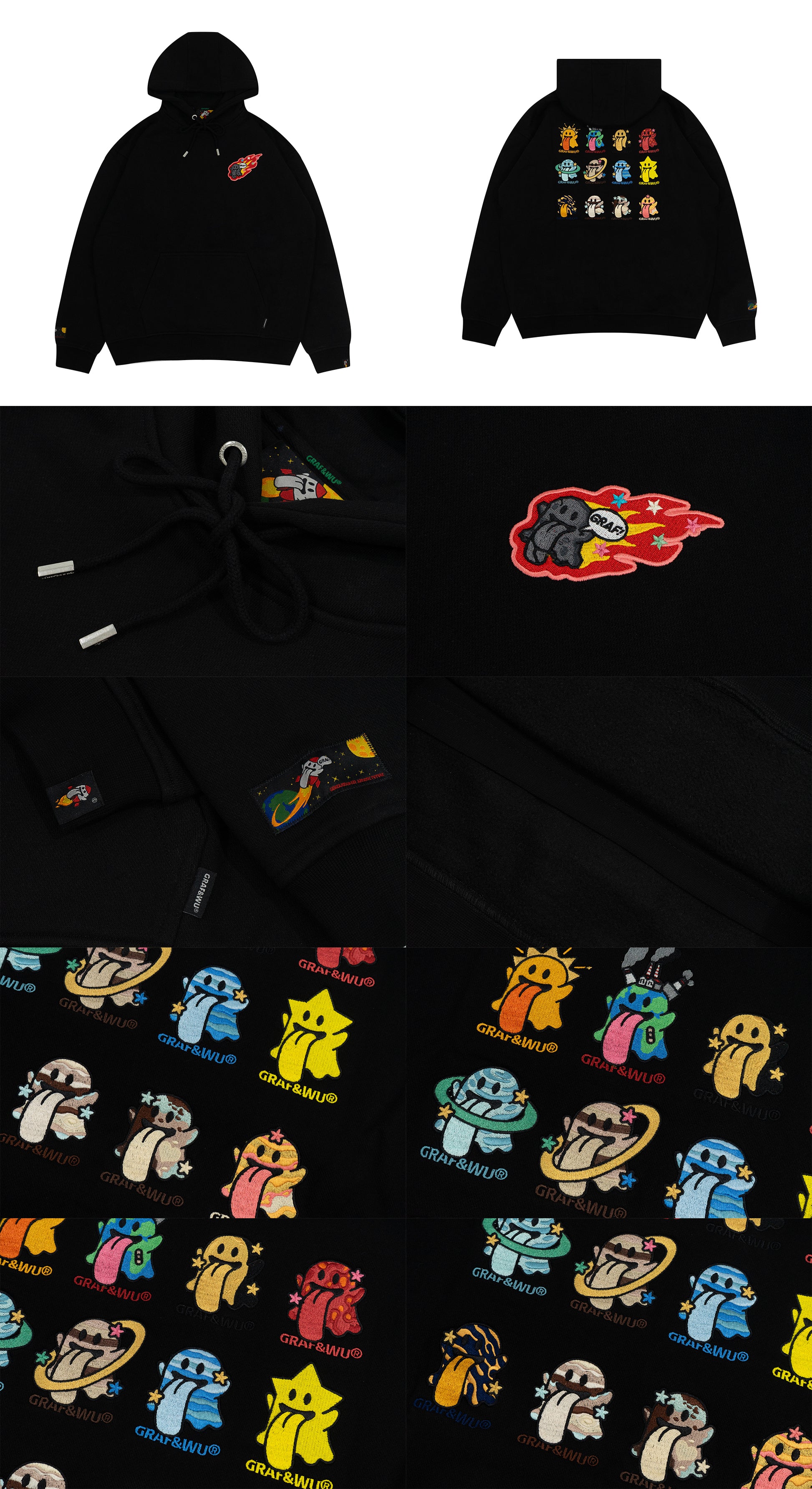 GRAF&WU Solar System 12 Planets Cute Ghost Character Hoodie