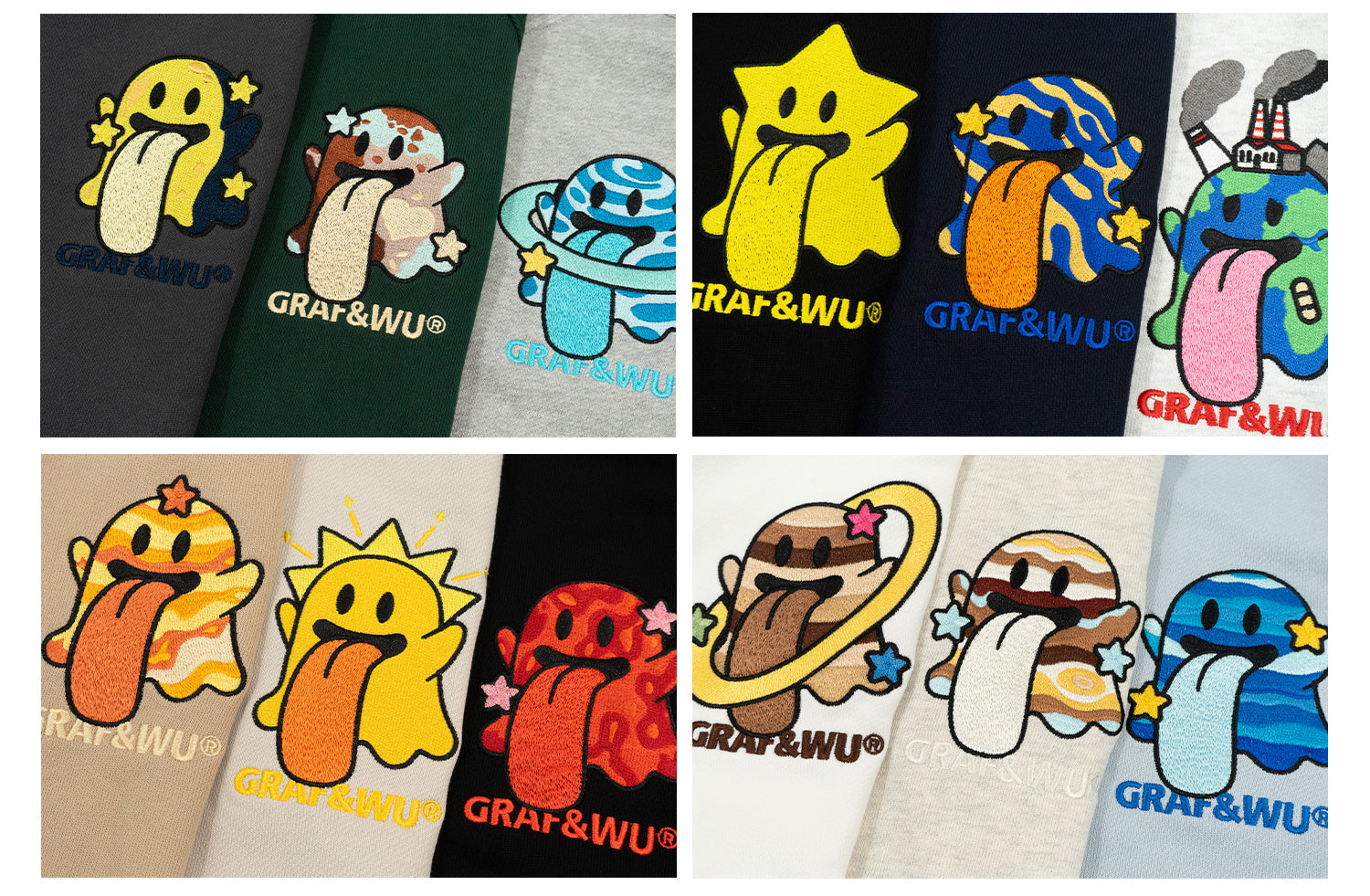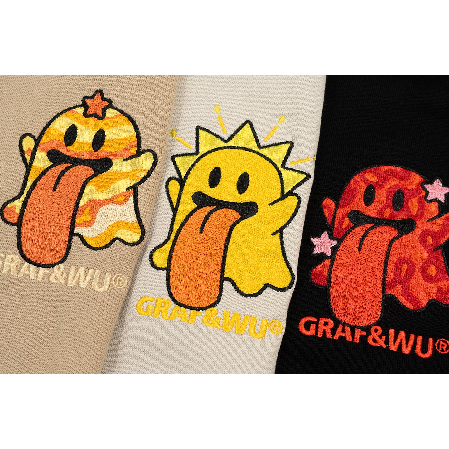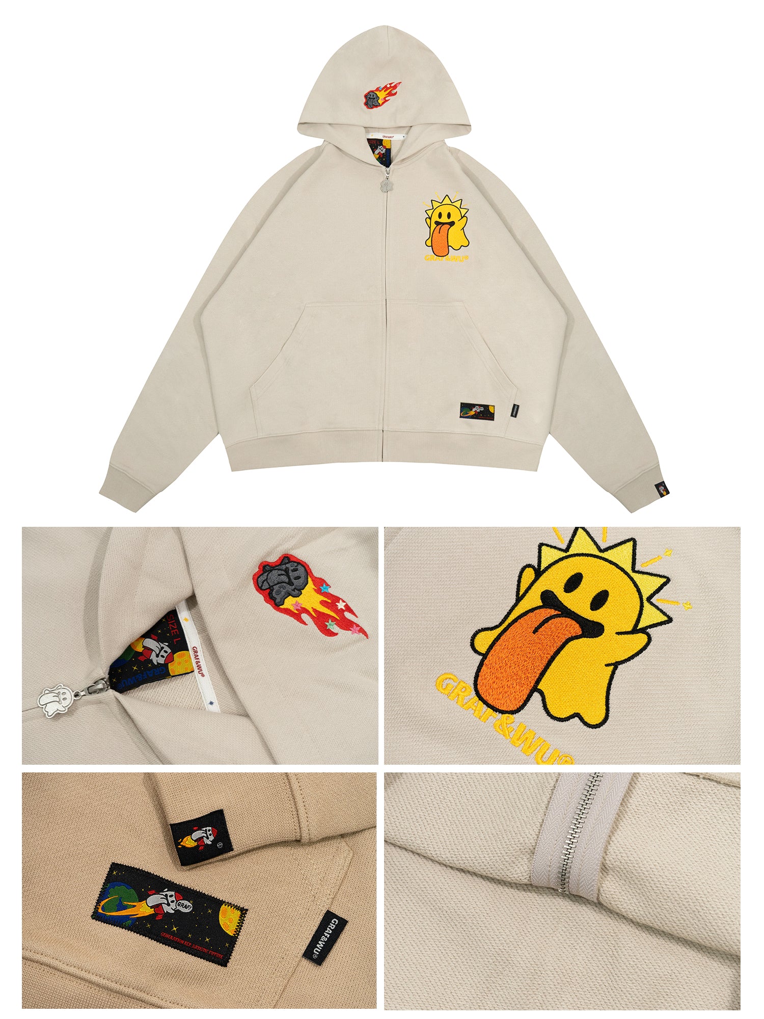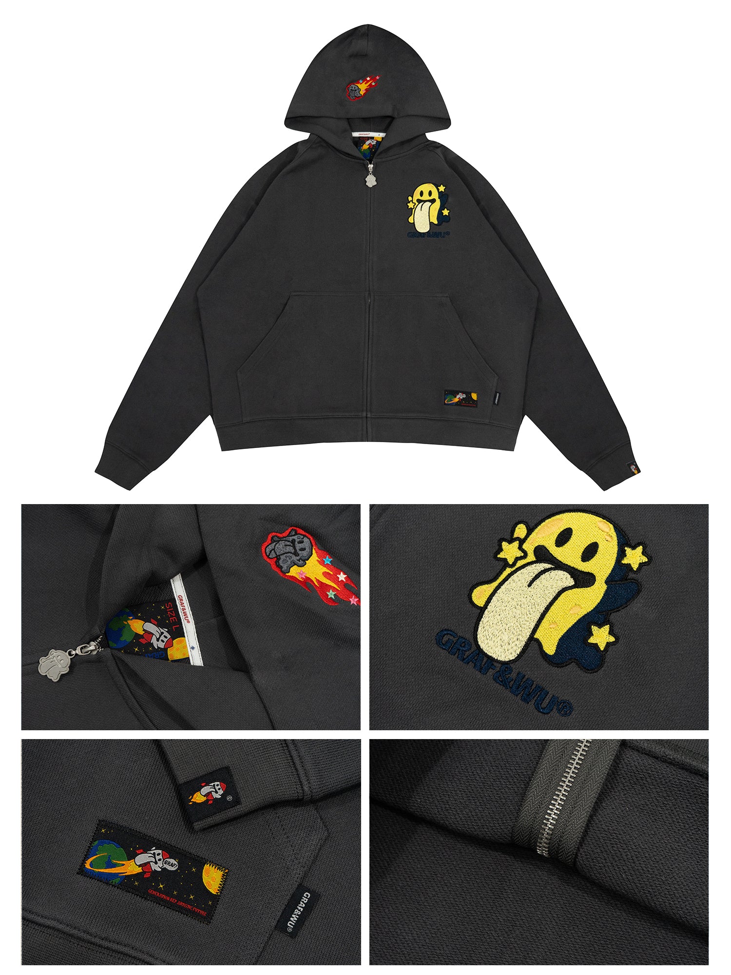 GRAF&WU Solar System Planet Cute Ghost Embroidered Zip-up Hoodie
