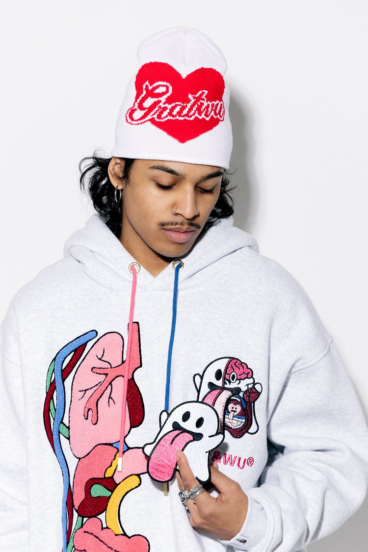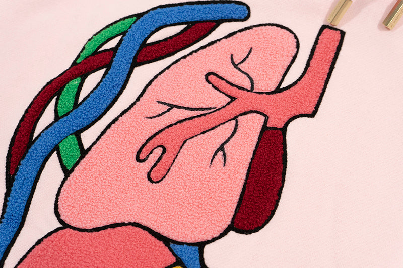 GRAF&WU Sweet Anatomy Cute Ghost Velcro Plush Pink Viscera Fleece Hoodie