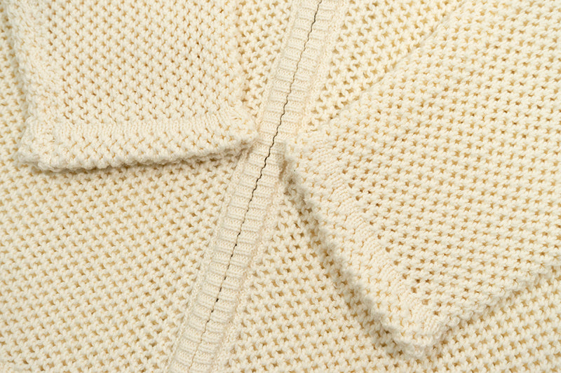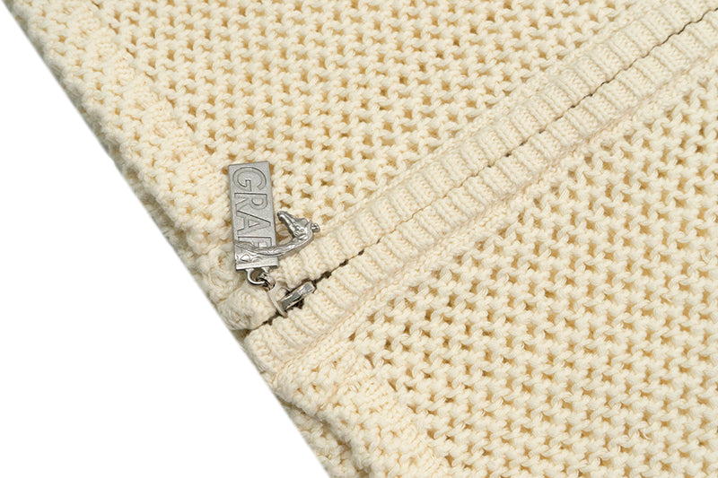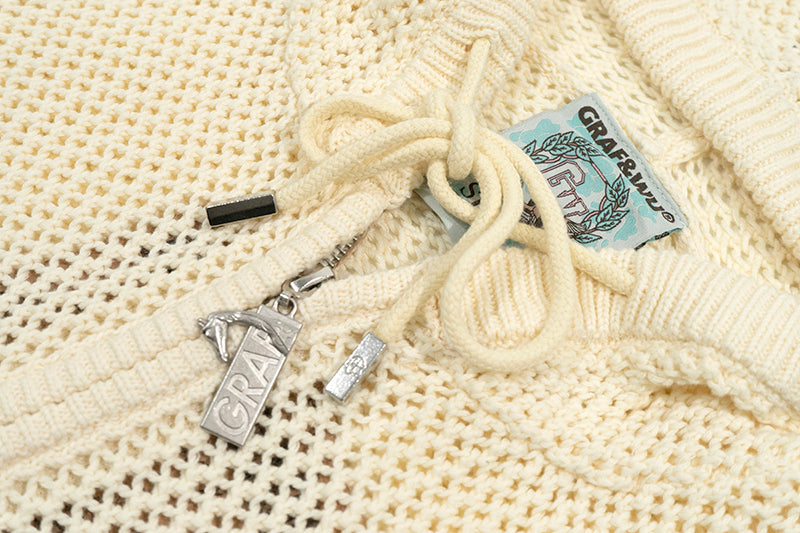 GRAF&WU Trust In GRAF Floral Embroidered Openwork Loose Hooded Zip-up Knit Sweater