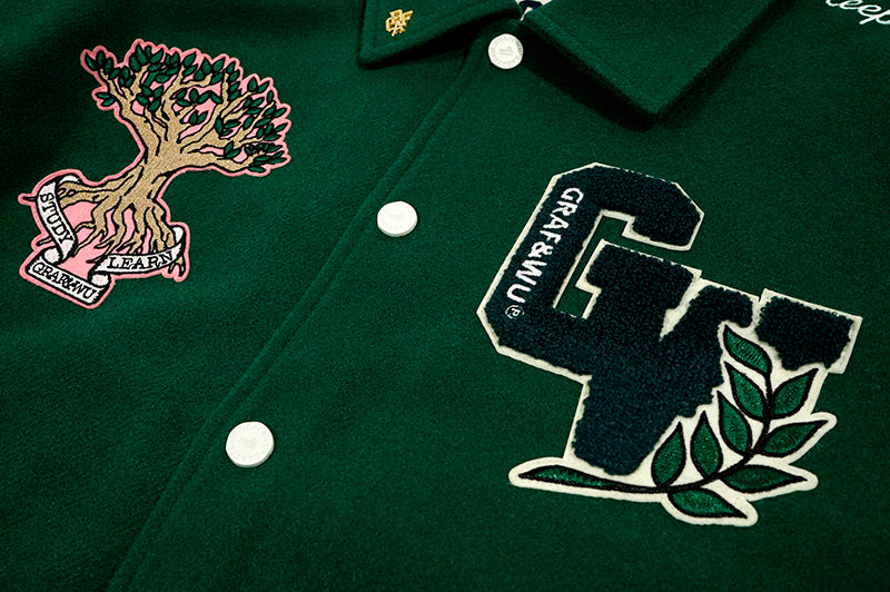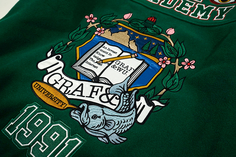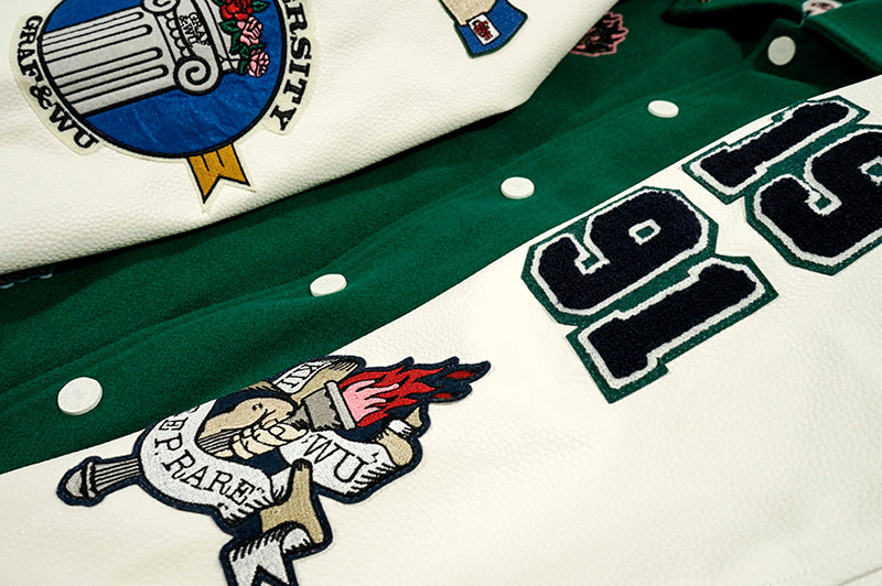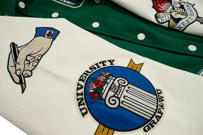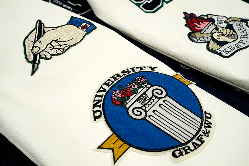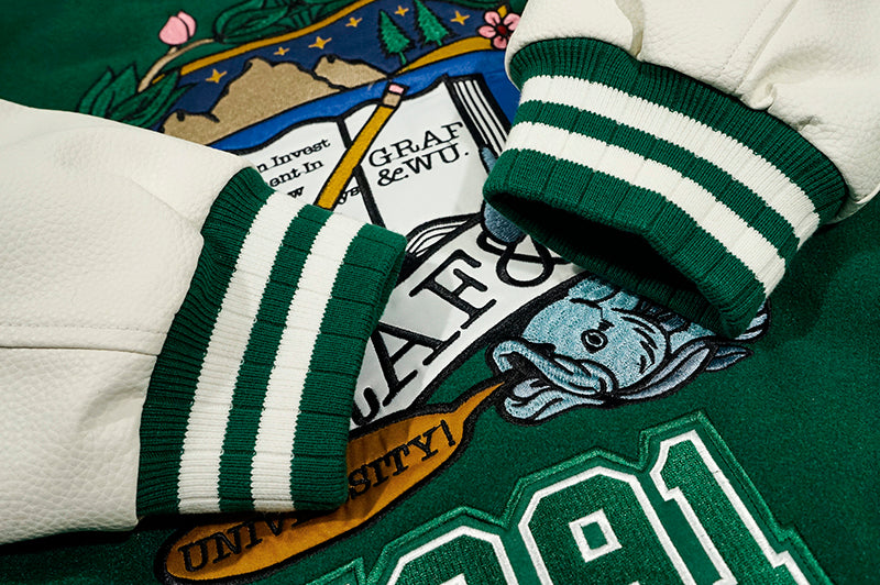 GRAF&WU University Them Leather Sleeved Wool Baseball Jacket