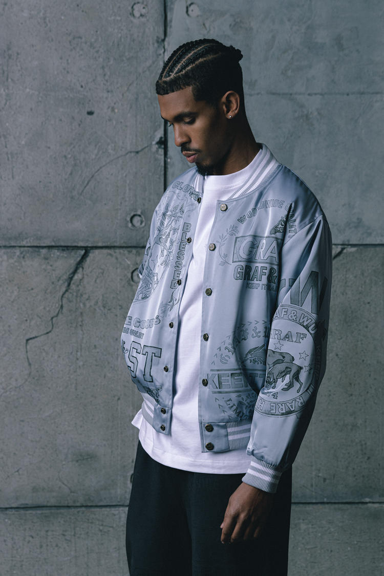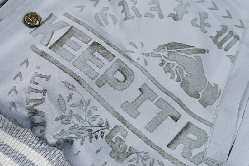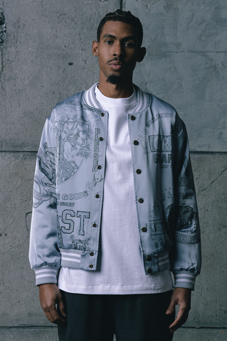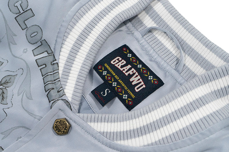 GRAF&WU Vintage Floral Giraffe Goddess Blessing Graphic Satin Thin Baseball Jacket
