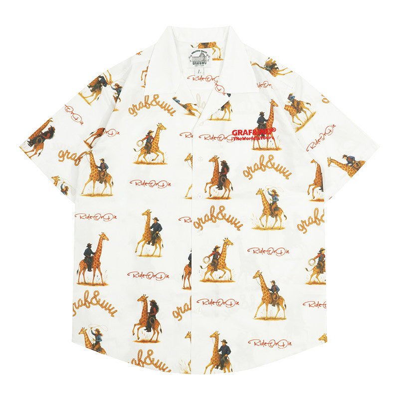 GRAF&WU Western Cowboy Giraffe Print Cozy Short-Sleeve Shirt