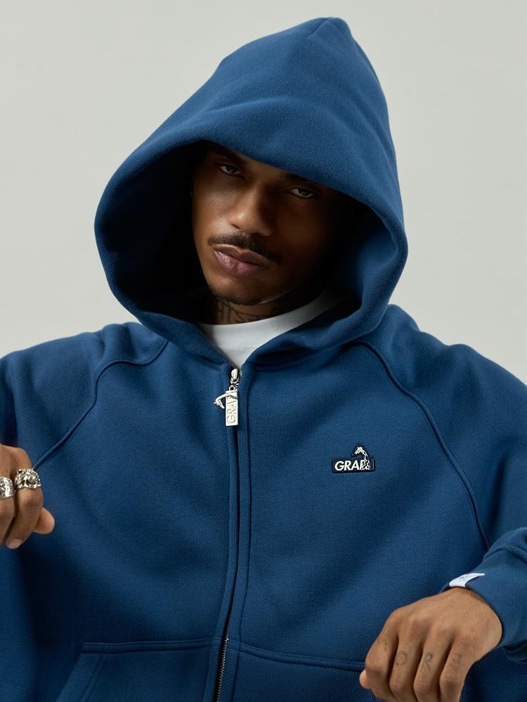 GRAF&WU Zip-up Hoodie Metal Deer Emblem Thick Fleece Cardigan
