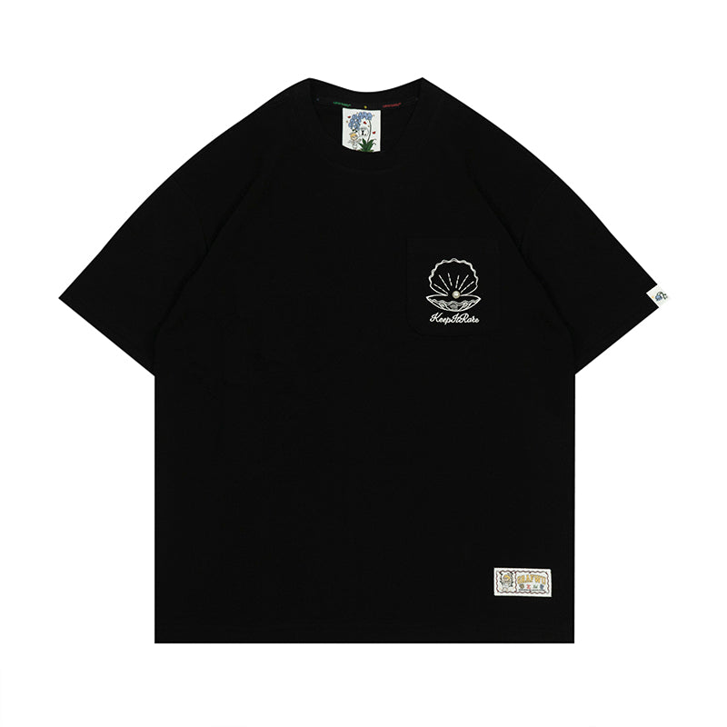 Design Elements And Concepts: Graf&Wu T-Shirts. The Clothes Are Designed With Small Pocket Details, The Pattern Adopts Visual Design, And The Small Pearls Are Luxurious Embellishment Elements. The Text Is: 'Keep It Real'. Just Like Our Creed.